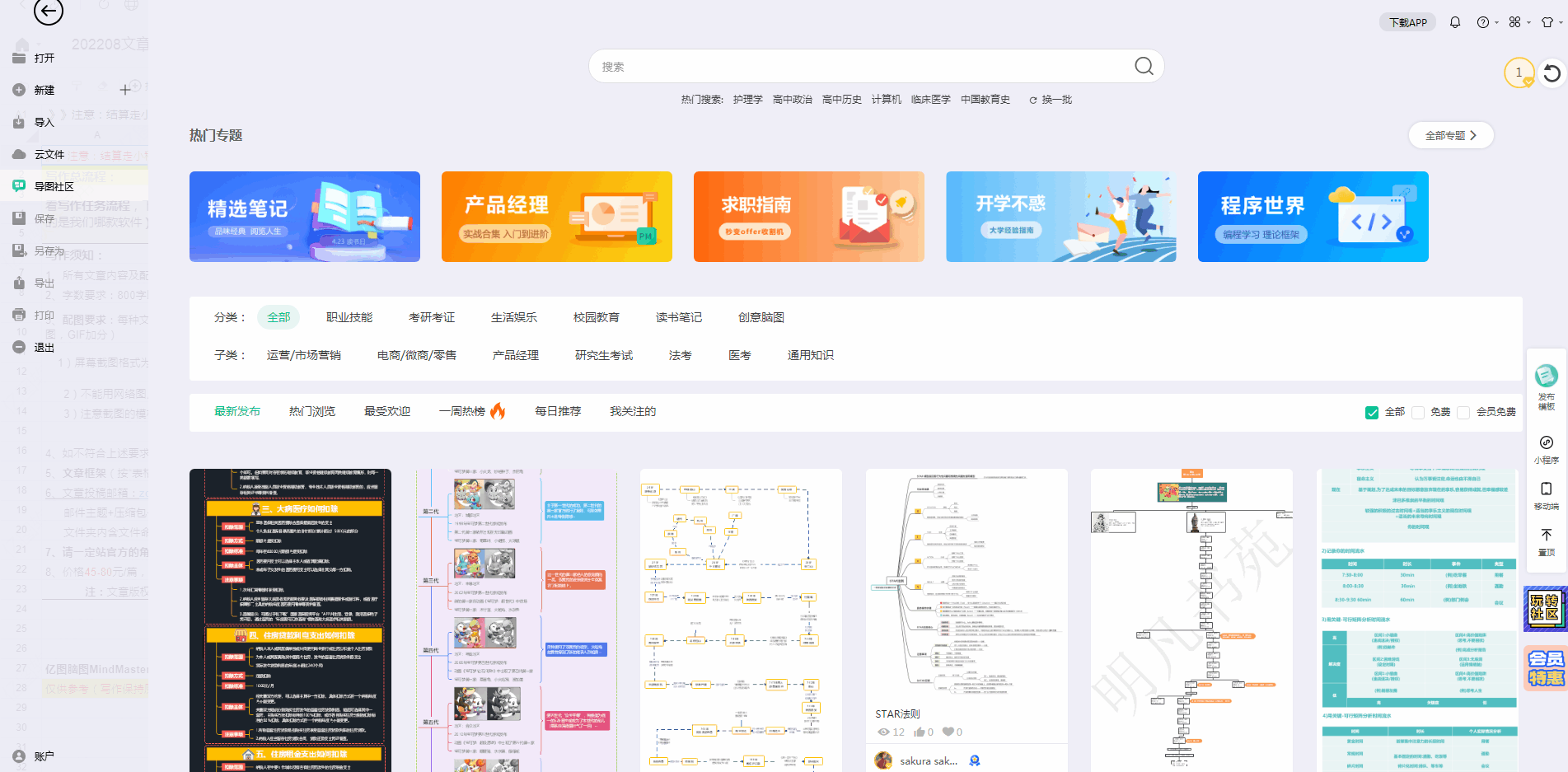 亿图脑图MindMaster导图社区有海量的资源,内容包罗万象,不仅可以和小伙伴一起点赞评论互动,还有上传自己的模板变现。