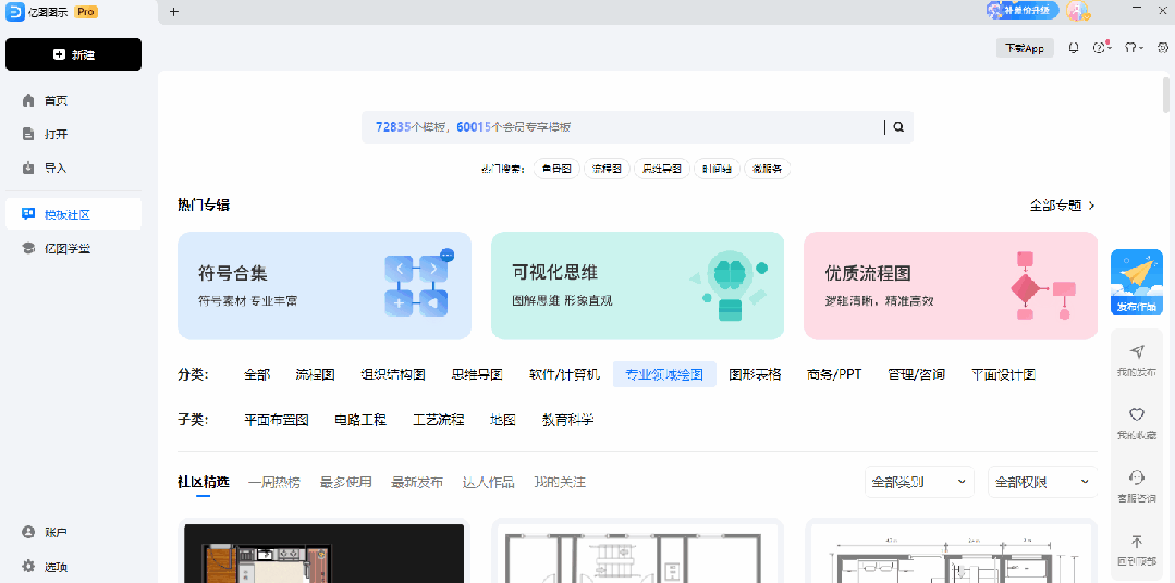 在模板社区找到专业领域绘图,实验室设备相关模板,在模板基础上新建空白页面。
