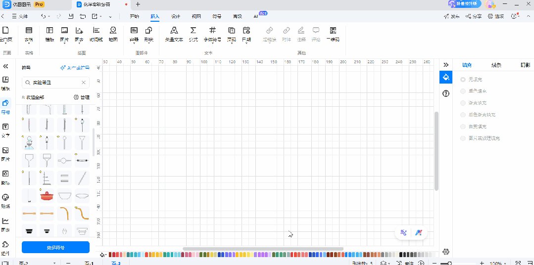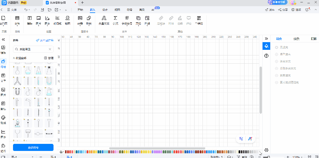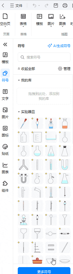新建空白画布,在左侧符号库搜索化学实验符号,选择实验器皿这一分类。