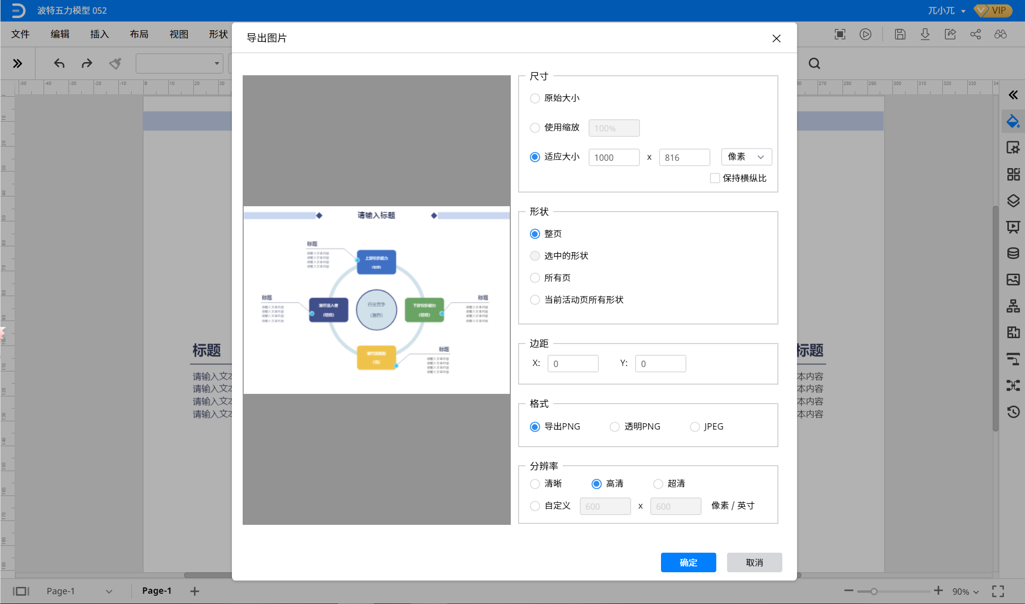 第五步:完成波特五力模型的绘制后,可以点击右上角的保存、下载、打印、分享等按钮,对绘制好的波特五力模型作品进行存储。也可以将作品导出为图片、PDF、PPT等格式。