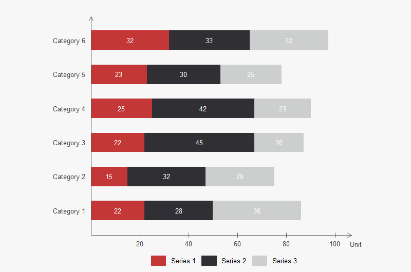 2、条形图:常用于对比两类事物在不同特征项目的数据情况,显示各个项目之间的比较情况,能够清晰、直观的表示数据。