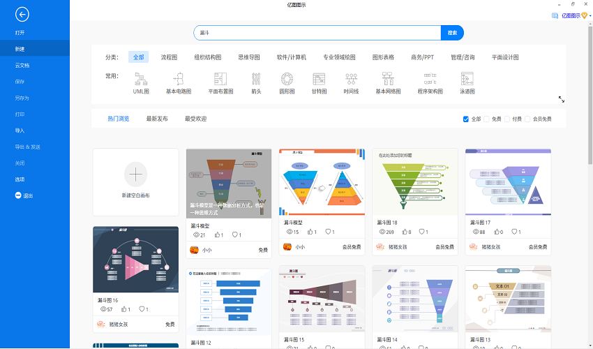 第二步:新建模型。在搜索框中输入“漏斗”。从展示的模板库中,确定一个合适的模板,打开模板