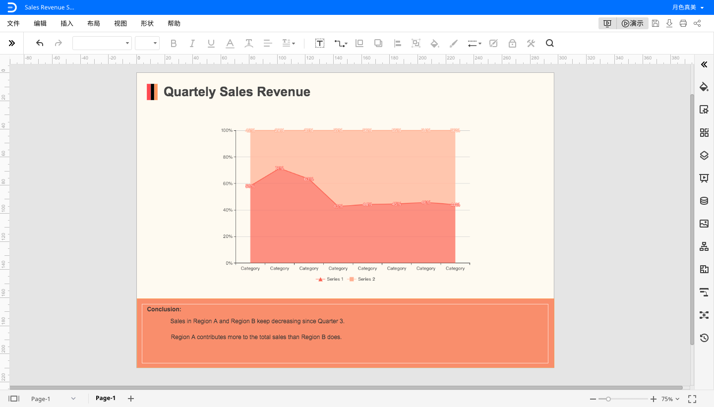 使用亿图现在绘制面积图,直接选用相关的面积图模板,可以高效绘制出符合各方要求的面积图,不仅提高了使用者的办公和工作效率,还图像化了数据,使数据呈现更为直观。