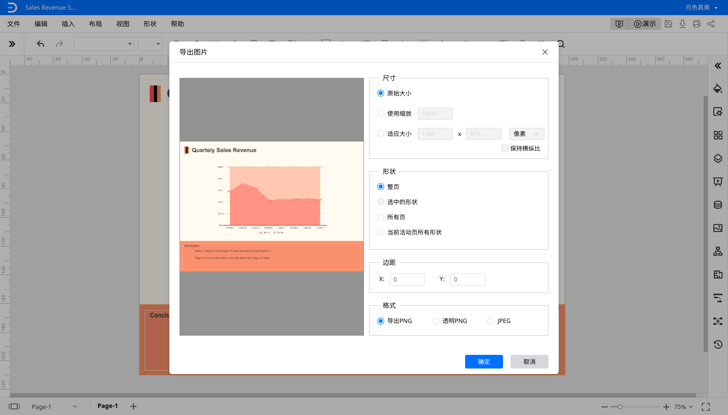 第五步:完成面积图的绘制后,可以点击右上角的保存、下载、打印、分享等按钮,保存已经绘制完成的面积图作品。也可以选择将面积图作品导出为图片、PDF、PPT等格式。