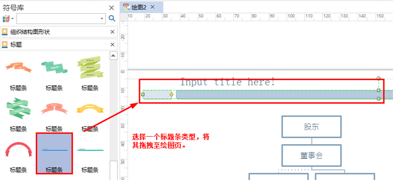 从符号库中,选择一个标题条类型,将其拖拽至绘图页,标题条的颜色会根据已经设置好的主题颜色自动修改。双击标题的文字可对文字进行修改。