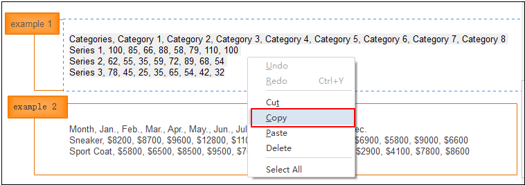 2、编辑数据:在电脑本地新建txt记事本,将上文所复制的文本内容,粘贴在txt记事本里。根据模板,进行自定义修改。第一行是类别的名称,从左到右,依次填写。第二行至第n行是系别,第一列为系别名称,其它列为数据。每个数据之间需要用逗号隔开,避免导入出错。