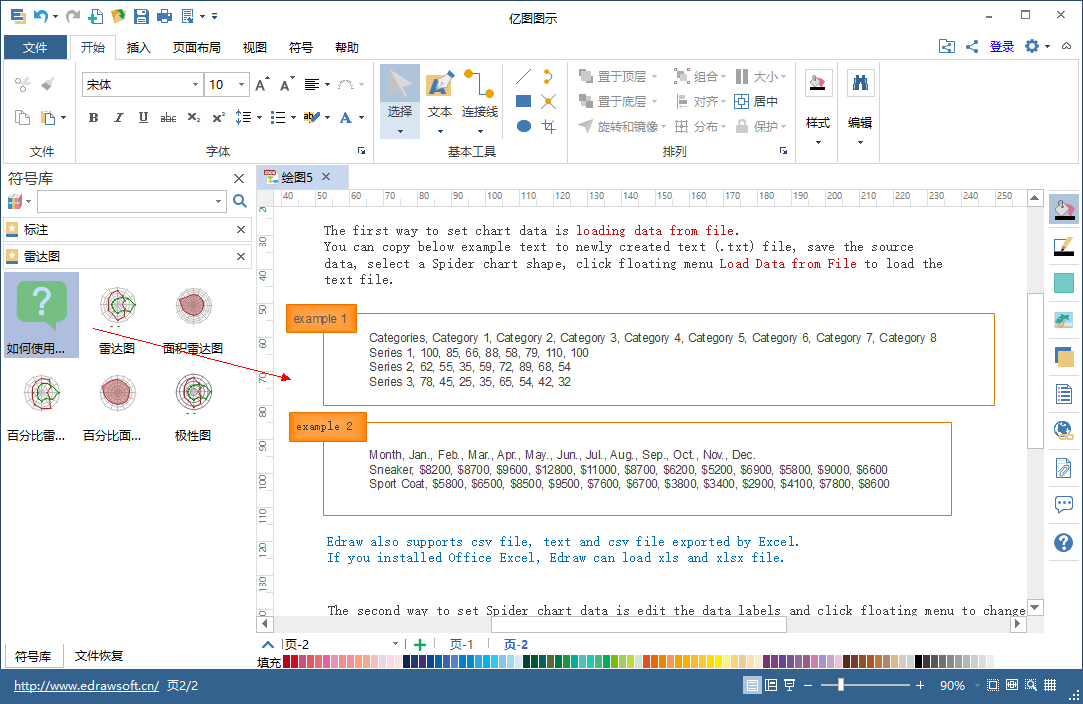 亿图图示软件支持用户从本地导入数据,一键生成雷达图。具体的操作方法如下:
