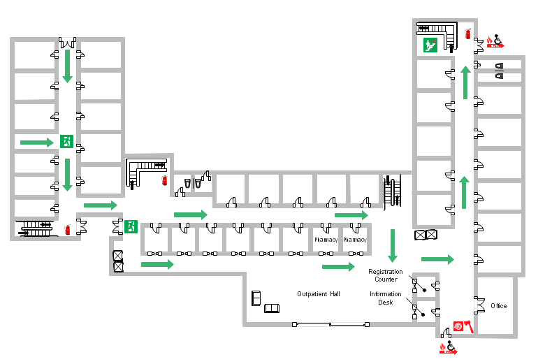 消防疏散图是对火灾和烟气流动及疏散形式进行预测,并在此基础上采取一定的措施,对安全疏散设施的设置和设计提供合理的安全防护或疏散方法,以保证高层建筑内的人员安全。