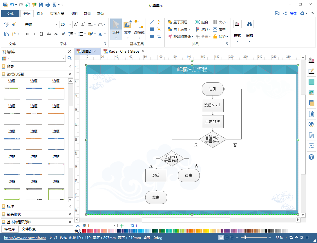第4步:最后再添加文字和注释,一份完整的流程图即可大功告成。另外,亿图软件还有丰富的背景图案以及标题栏样式可以选择,这将大大提升流程图的颜值。