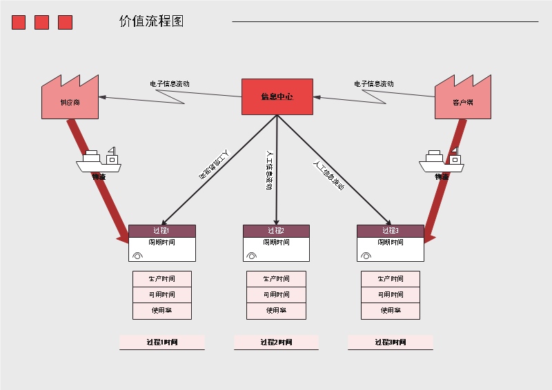 第三张价值流程图模板,灰底供应生产价值流图,适宜公司物流管理适宜。