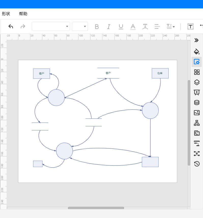 第三步:先点击画布中的数据流程图,再点击右侧属性面板中填充、线条、阴影等,对图形的颜色,透明度,线条颜色等进行修改。