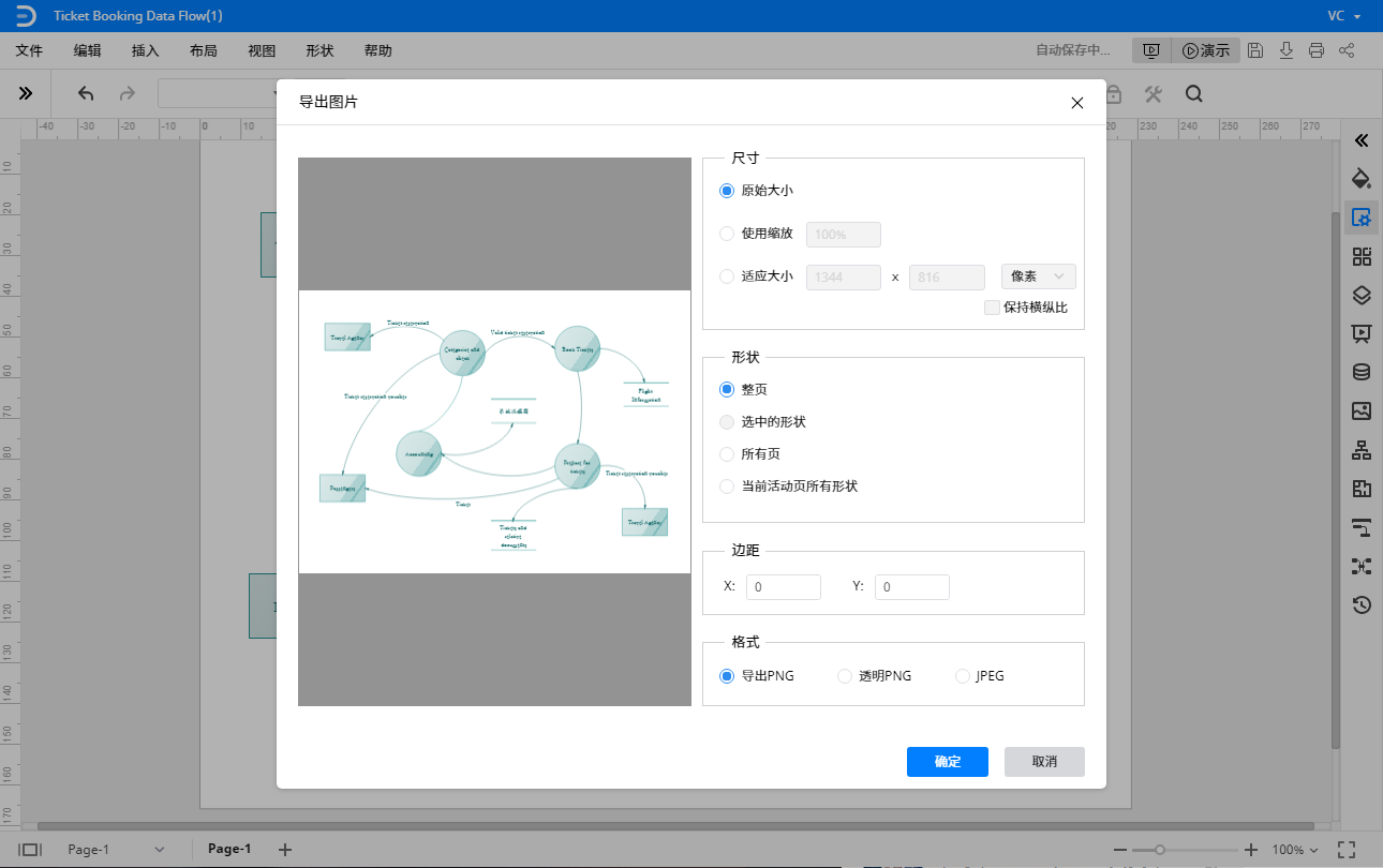 第五步:完成系统流程图的绘制后,可以点击右上角的保存、下载、打印、分享等按钮,对完成的系统流程图作品进行存档。也可以将图表导出为图片、PDF、PPT等格式。
