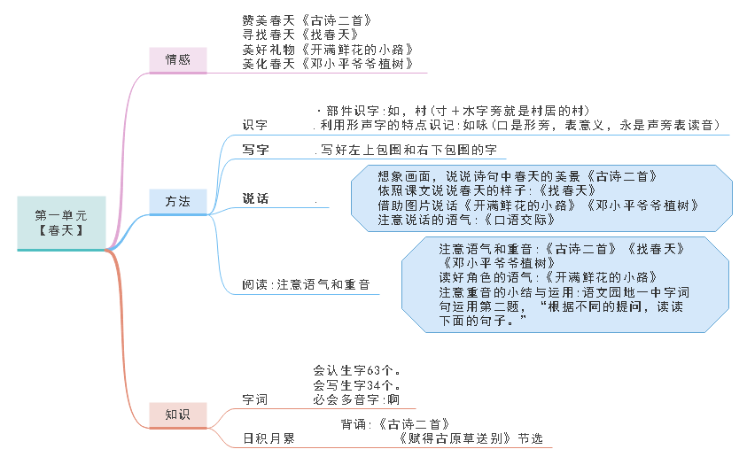 文末附上一张二年级下册语文第一单元的思维导图,如有需要,点击图片即可以查看或获取高清原图。