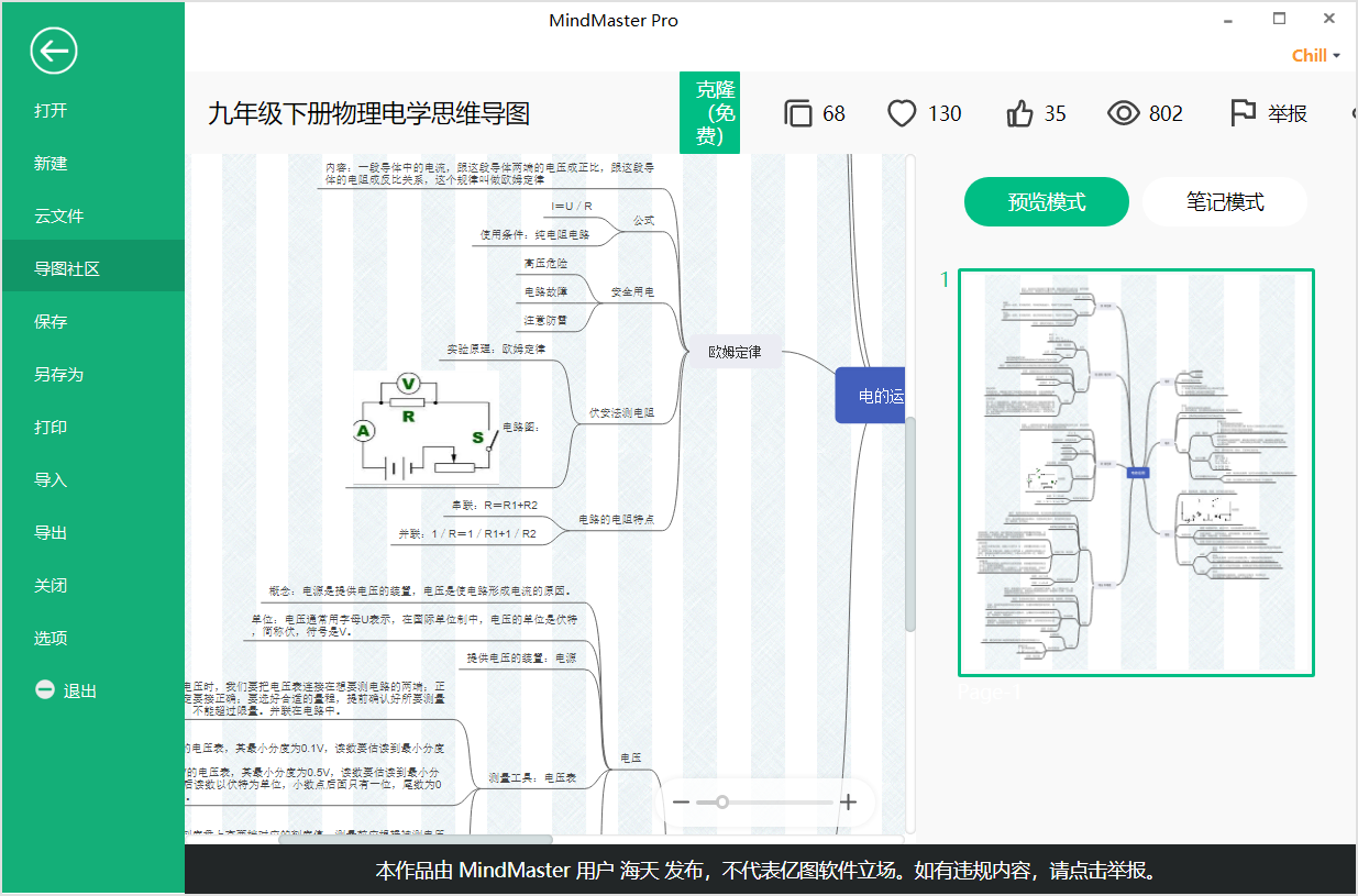 导图社区内不仅有九年级下册物理思维导图,其他科目、年级的导图,都可以在导图社区中找到。导图社区内置有10万+原创思维导图,各行各业的思维导图,这里应有尽有。社区里有各种主题方便寻找,对画图小白也十分友好。软件含有各种主题模板,如:鱼骨图、长图、组织架构图、树状图等,总能找到你喜欢的种类。导图社区也是一个交换知识的平台,在这里可以沟通分享各种类型的知识。除了课本教材,另外这里还有运营干货、职场指南、育儿宝典等等,适用于各类人群。