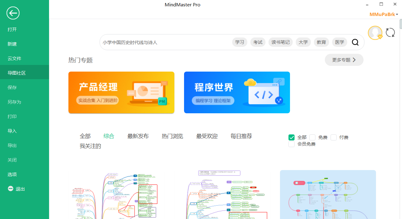 导图社区内不仅仅有小学中国历史时代线与诗人思维导图汇总,还有一年级下册语文、二年级下册数学、等非常多思维导图供用户使用。软件导出格式能兼容和导出比较多的文件格式,上文的小学中国历史时代线与诗人思维导图汇总不但可以直接导出到应用,还可以在导图社区内找到更多读书笔记提供借鉴学习,发表自己的思维导图,也可以和其他人沟通交流所学所看,为大家提供一个交流学习的平台。