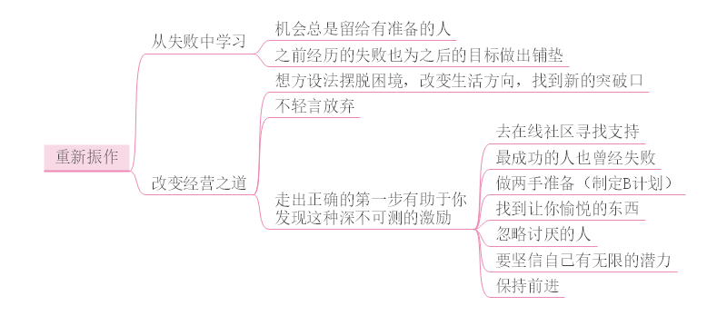 失败并不可怕,可怕的是失败即结束的想法。在失败中学习,找到自己失败的原因,吸取教训。毕竟机会都是留给有准备的人,想办法摆脱困境,改变生活方向,找到新的突破口,重新开始,所以不要轻易放弃。
