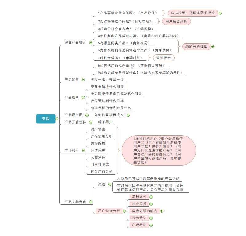 在评估这些问题的时候,产品经理可以运用模型,马斯洛需要层次理论、SWOT分析模型等。考虑好基本问题之后,产品经理还要沟通预算成本,进行市场调研。谁是目标用户?用户会怎么使用产品?为什么选择你的产品?优点缺点是什么?在设计需求的时候,产品经理就都需要考虑到。
