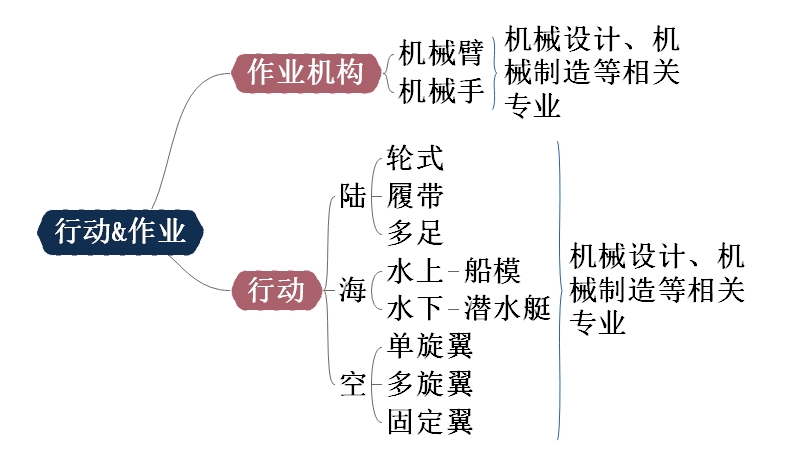 就和人类一样,我们要做出视觉、听觉、触觉的下一步举动的时候,我们的大脑会控制着行动。用夸张手法去形容,这时候的机器人是可以上天下海的人工智能产品,所以机械设计、机械制造等相关专业,也会在这一环节,有着重要的参与。