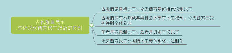 - 古希腊是直接民主,今天西方是间接代议制民主;