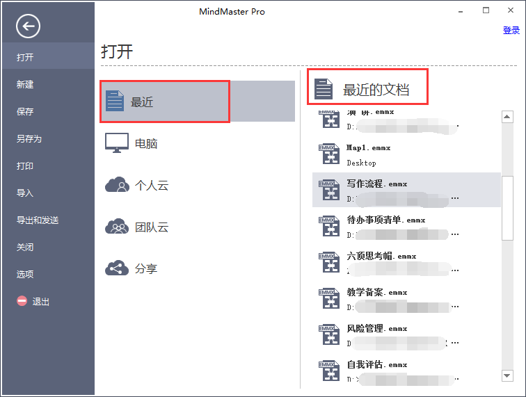 最近使用的文件列表:打开软件后,在“打开”界面,可以快速查看最近编辑、打开过的文档。“最近使用的文件列表”可用来控制“最近的文档”显示数量。