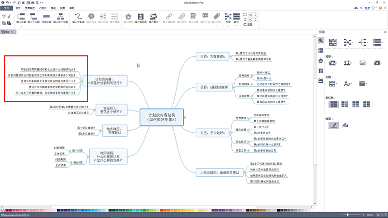 小编将右边面板设置了一个遍之后,大概的成品如下图,此刻可以在细化一下,将子主题框起来,在上方工具栏里设置编号。