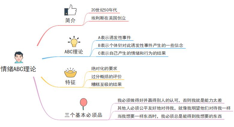 在繁忙的工作和生活中,我们经常会突遇各种各样的境况,有时会因为控制不住自己直接情绪大爆发。说到情绪管理,我们不得不聊一下这位美国临床心理学家埃利斯的情绪ABC理论。所谓的情绪ABC理论认为,人的行为后果C是由诱发性事件A和脑海里面的信念和认知B决定的。本篇文章中,小编会通过思维导图教你认识ABC理论并学会如何调节情绪。