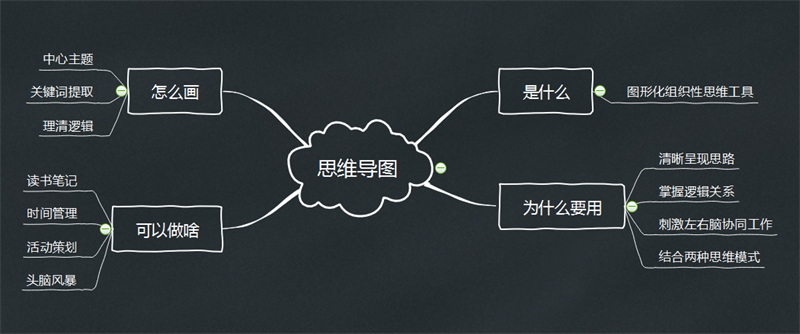 在学习思维导图之前,首先我们要知道为什么我们要用思维导图,事实上,只有知道一样东西有用才会有足够的学习动力。每个人使用思维导图的理由都不一样,有些是做工作计划,有些是做读书笔记,不管是什么使用理由你都得知道自己怎么样才算是学好了才行。