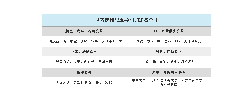 全球所有的发达国家和公司都在研究和使用思维导图。代表人物有知名人士:比尔·盖茨、沃伦·巴菲特、李嘉诚、迈克尔·戴尔等。他们缔造了商业奇迹,他们的一个共同特点就是:他们知道如何正确的使用他们的大脑,并且用这一优势帮助他们更好的创造财富。