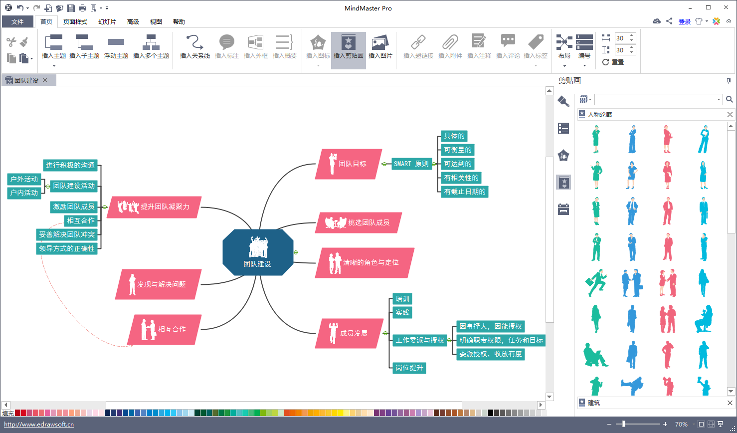 1)MindMaster能导出至Office 文本、演示文档及数据表。自带的资源包作为自定义风格、模板、剪贴画及图标的统称,能够将其导出,并分享给他人。这使得团队之间,Windows,Mac和Linux 设备之间的分享变得更便捷。