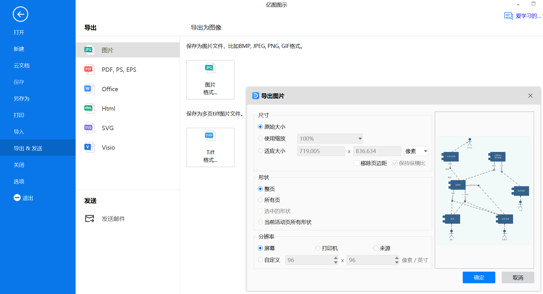第五步:完成部署图的绘制后,可以点击右上角的保存、下载、打印、分享等按钮,对绘制好的部署图作品进行存储。并且亿图图示还支持作品导出为图片、PDF、PPT等多种格式。