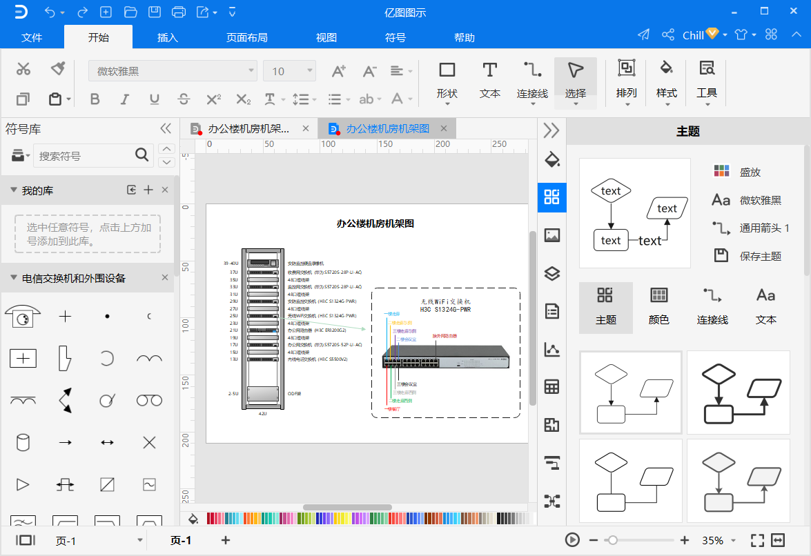 1、“亿图图示”可以更加简单快捷绘制相对复杂的机房机架图,可以套用模板进行编辑,也可以选择白板自行创作,满足用户需求,实行人性化服务。