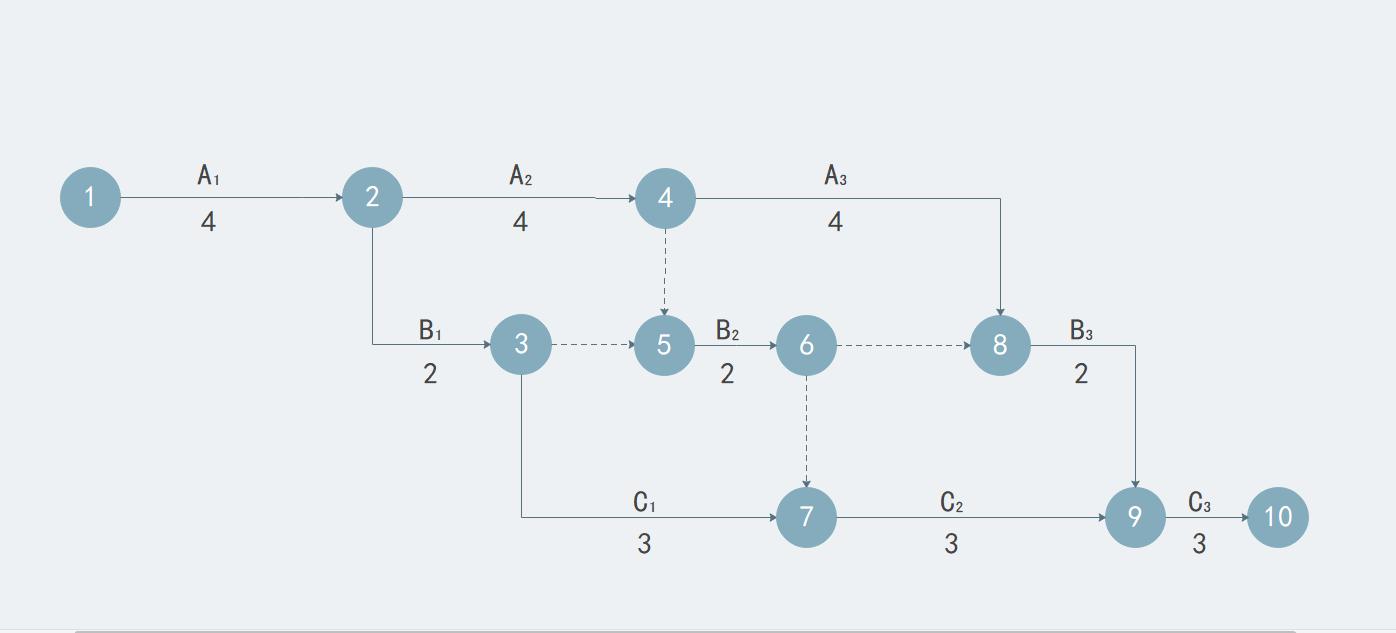 双代号网络图,顾名思义就是用两个代号来表示信息的网络图,这两个代号分别是节点号和箭头。双代号网络图主要用于反应工作之间的逻辑关系,也能够科学合理的安排资源的供给和调配以及控制工程的进度等。在这个时代,双代号网络图已经是一种较为普遍的网络计划工具,对于工程管理有着重大意义。