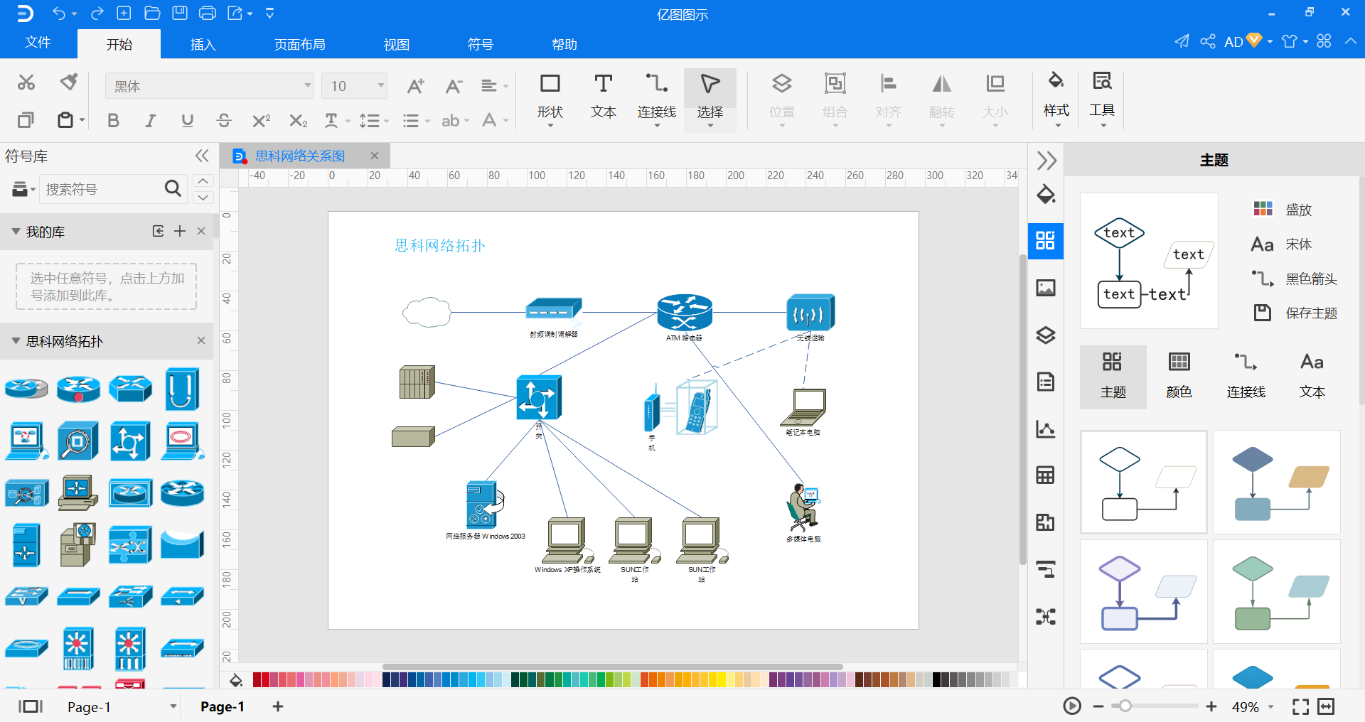 第三步:软件内部左侧会有思科网络拓扑图的相关符号,拖动符号进行替换。此外,“符号库”内部也有海量精美符号可供选择和使用。