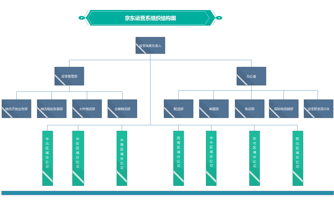 京东运营组织结构图——对比京东的产品与服务结构图来比较就会发现,京东做的所有战略都是在这个框架里面——倒三角理论。