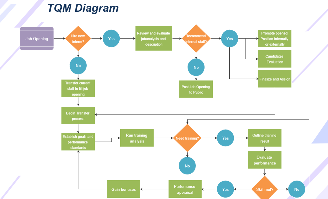 全面质量管理图是什么呢?全面质量管理图是一种让管理层和员工可以参与的,不断改进商品和服务生产过程的一种方法。它是质量和管理工具的结合,旨在整合所有组织功能(营销,财务,设计,工程和生产,客户服务等),以专注于满足客户需求和组织目标,减少因浪费做法而造成的损失。