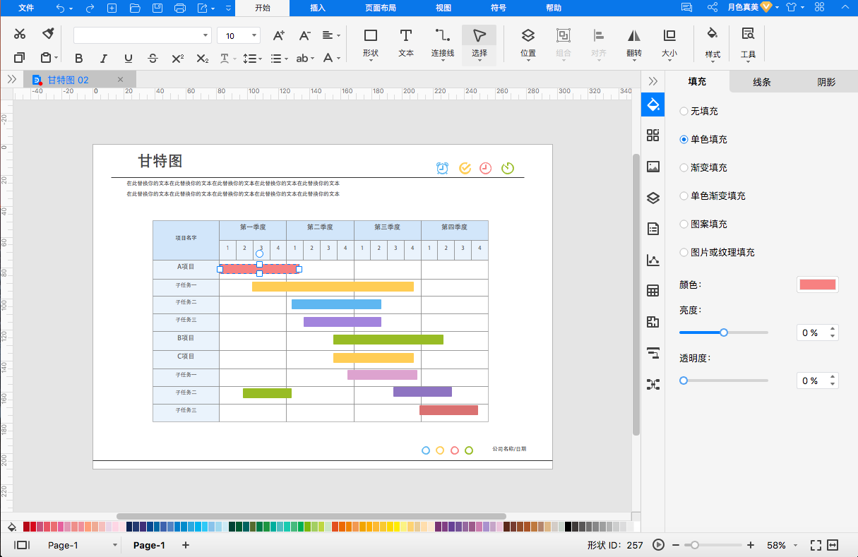 第四步:双击文本框,修改替换甘特图模板里的文本。也可以点击上方文本选项,新建一个文本框。