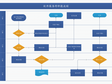 跨职能流程图是什么呢?跨职能流程图多用于公司或者企业中的各个部门之间联系的一个流程图,简单的说就是在一家公司中有着各种各样的部门,每个部门之间都是有业务进度上的关联。跨职业流程图正是将这种关联进程进行流程化,制作一个流程图,来直观的分析各个部门在一个任务上不同进程。让我们一起用亿图图示绘制吧 ...