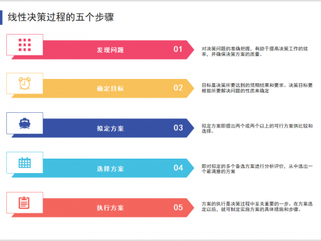 决策过程是指从问题提出到定案所经历的过程。决策是一项复杂的活动,有其自身的工作规律性,需要遵循一定的科学程序。在现实工作中,导致决策失败的原因之一就是没有根据严格科学的程序进行决策,因此,明确和掌握科学的决策过程,是管理者提高决策成功率的一个重要方面。 ...