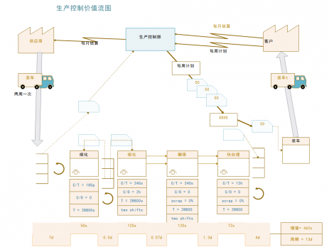 生产价值流图是指在正确的时间,以适当的价格,同时使用最小的投入、设备、能源消耗,材料和人力提供给客户所需要的产品或服务的能力,从原材料转变为成品,并赋予价值的全部活动,是对产品价值流进行描述的工具。 ...