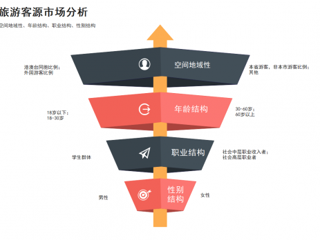 按照市场营销的角度出发,市场就是一群具有相同消费动机,也就是消费者的需求;并且具有消费能力及支付能力的人组成的。客源市场是一个人口众多,特征较复杂,客源来自不同的国家,有着不同的信仰,不同的个性,不同的文化兴趣与不同的需求。 ...