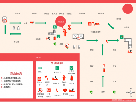 在火灾,地震或其他危急情况时,一条紧急逃生的安全通道就显得格外重要。在建筑设计时都会考虑到这一点,如何让更多的人知道逃生路线呢?消防图就是将三维的立体建筑二维化,在平面上,用箭头标注出逃生路线,以达到协助逃生的目的。让我们一起用亿图图示绘制吧 ...