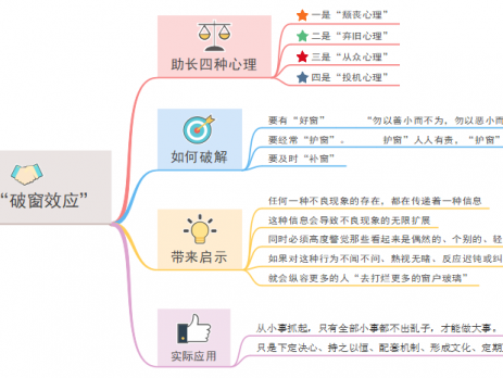 “破窗效应”是由詹姆士·威尔逊及乔治·凯林提出的一个犯罪学理论,该理论指出如果放任环境中的不良现象,会诱发人们效仿,甚至变本加厉。随着家庭重视并培养子女教育,如果将心理学的“破窗效应”应对子女教育问题指导为出发点,本文以思维导图形式论述,如何从“破窗效应”启发教育孩子避免其“破窗”,并让其茁壮成长。 ...