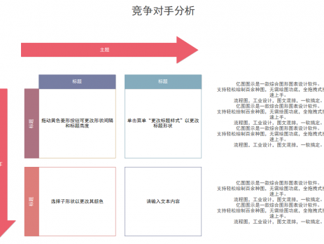 市场分析图就是公司面对产品或新型产品研发做的市场调研。市场分析主要由市场资料和用户的市场数据构成,通过对数据和资料的分析,了解目前市场消费者对产品质量、价格以及性能的喜好,来对自己的产品进行调整和对新型研发的产品进行设计构思。让我们一起用亿图图示绘制吧 ...