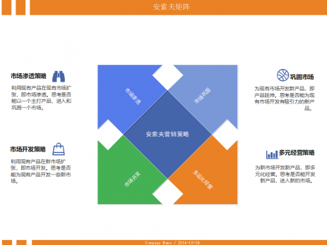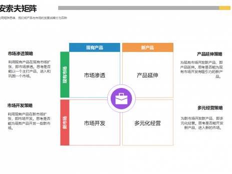 安索夫矩阵怎么画?五步轻松上手好看图表 2021-01-26T16:16:32+08:00安索夫矩阵是一种针对产品和产品市场的营销策略图表,主要分为五个模块,分别是市场渗透、市场开发、产品开发、多远化经营、市场巩固。企业的发展必定离不开产品的创新,所以需要更加清楚的了解产品的市场、产品的创新方向、产品的优势。 ... 2021年1月26日 商务图表 亿图图示, 安索夫矩阵 阅读更多...