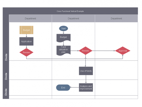 跨职能流程图是什么呢?跨职能流程图多用于公司或者企业中的各个部门之间联系的一个流程图,简单的说就是在一家公司中有着各种各样的部门,每个部门之间都是有业务进度上的关联。跨职业流程图正是将这种关联进程进行流程化,制作一个流程图,来直观的分析各个部门在一个任务上不同进程。让我们一起用亿图图示绘制吧 ...