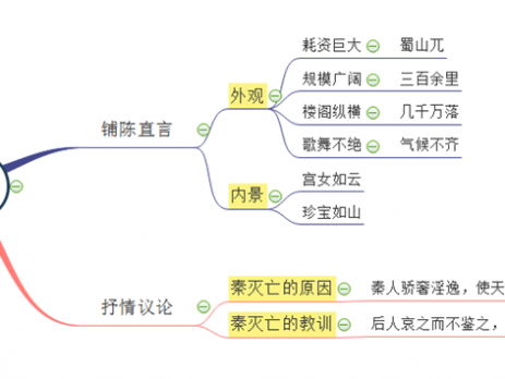 借用思维导图轻松学习古文《阿房宫赋》 2018-11-16T16:51:07+08:00《阿房宫赋》是唐代文学家杜牧创作的一篇赋体文章。文章通过对阿房宫兴建及其毁灭的描写,生动形象地总结了秦朝统治者骄奢亡国的历史教训,向唐朝统治者发出了警告,表现出一个正直文人忧国忧民、匡世济俗的情怀。接下来就让我们一起用思维导图来梳理一下整篇文章吧。 作者从三个方面来描写阿房宫:一是写阿房宫建筑之奇,二是写阿房宫美女之众,三是写阿房宫珍宝之多。写建筑,课文先展开广阔而高峻之全貌,进而细绘宫中楼、廊... 2018年7月27日 思维导图 思维导图, 语文课文, 阿房宫赋 阅读更多...