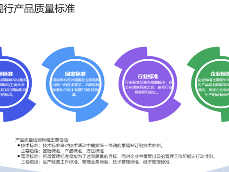产品质量是衡量产品生产、检验和评定质量应该达到的规定,要求产品质量特性达到一定的标准。产品质量图根据标准的使用范围可划分为国际标准、国家标准、行业标准和企业标准等。产品质量图是表示产品质量的水平,也是生产商对消费者和企业做出的产品质量承诺。 ...