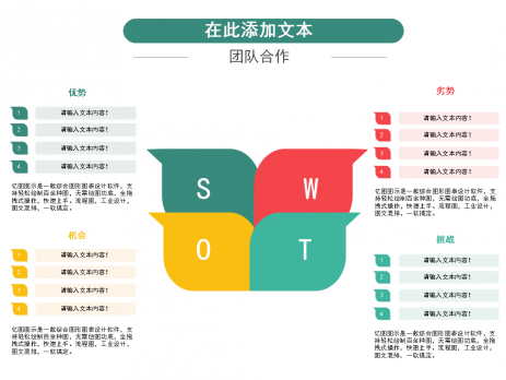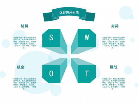 SWOT模型是一种四格矩阵思维的框架模型图,通过优势、劣势、机会和威胁四大模块,去进行深度剖析。举个例子,优势可以包括:公司的核心能力是什么?公司在那些领域有合适的优势?让我们一起用更快速的方式去进行绘制,接下来就和亿图图示一起试试看吧! ...