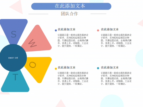 swot分析法又称态势分析法,即通过将研究对象相关的内部优势、内部劣势、外部机会和外部威胁分别列举出来,并将其排列成矩阵形式,然后将这些因素加在一起进行分析,从而得出相应的结论。让我们一起用亿图图示绘制吧 ...